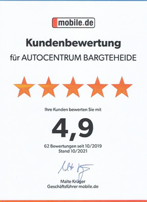 „AUTOCENTRUM-Bargteheide eines der besten Autohäuser Deutschlands*“